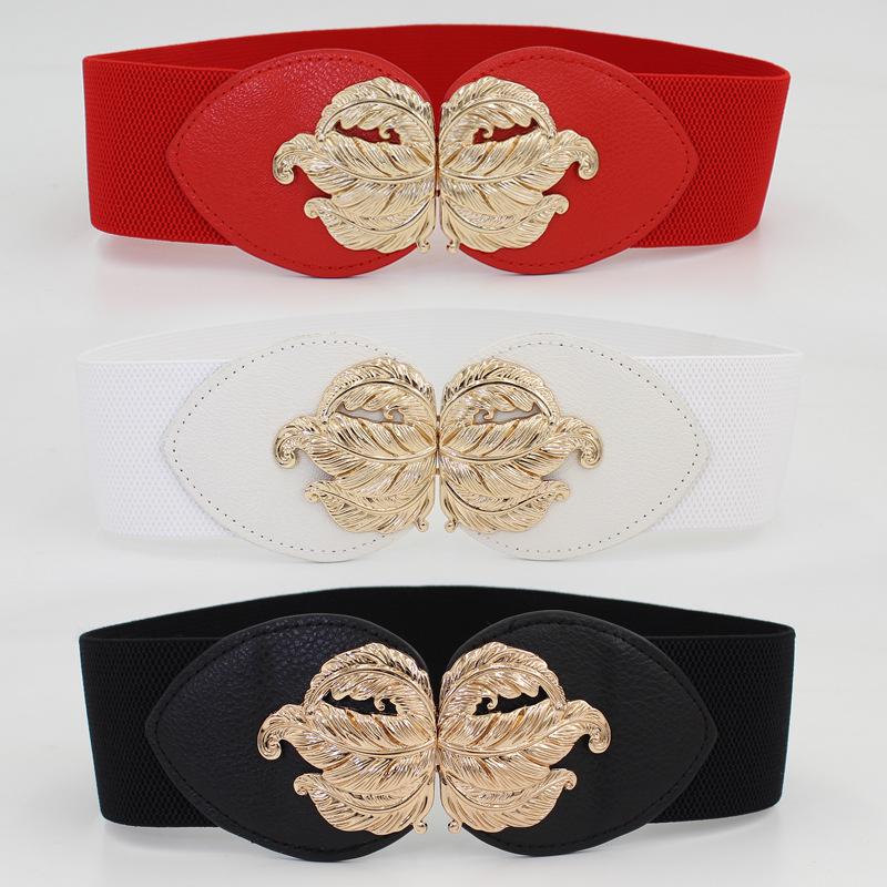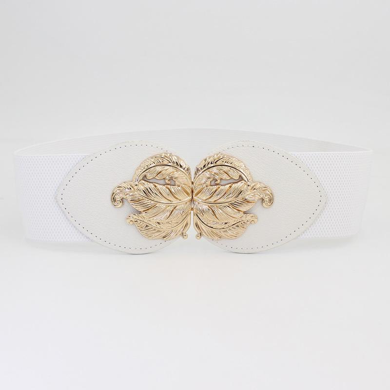 Эластичный ремень Женский пуховик Пальто Декоративная пряжка с золотыми листьями Эластичный широкий пояс