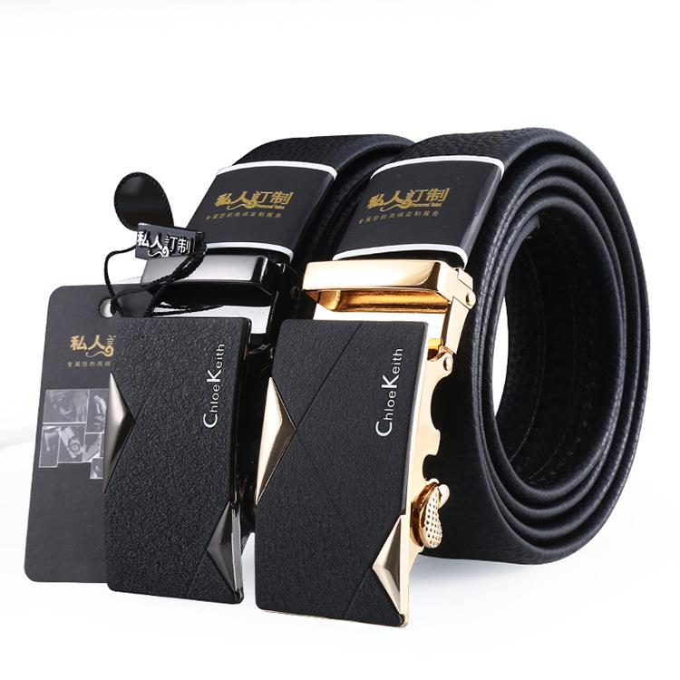 Мужской ремень с автоматической пряжкой из сплава, подарочный набор, деловой, двухслойный кожаный ремень