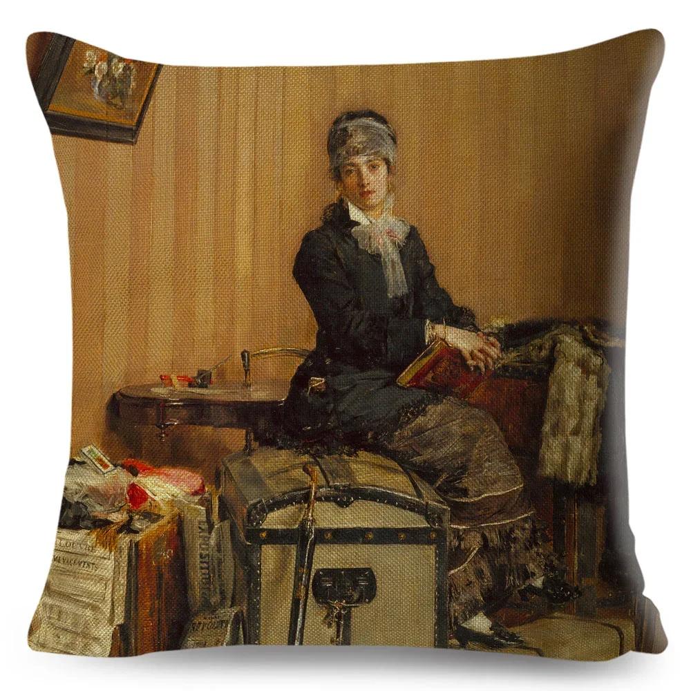 Наволочка в винтажном стиле для женщины Декор Европа Леди Девушка Принт Наволочка Полиэстер Наволочка для дивана Дома Машины