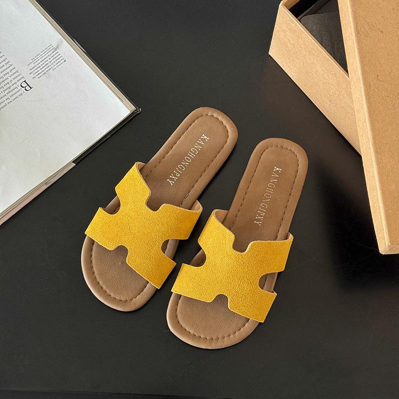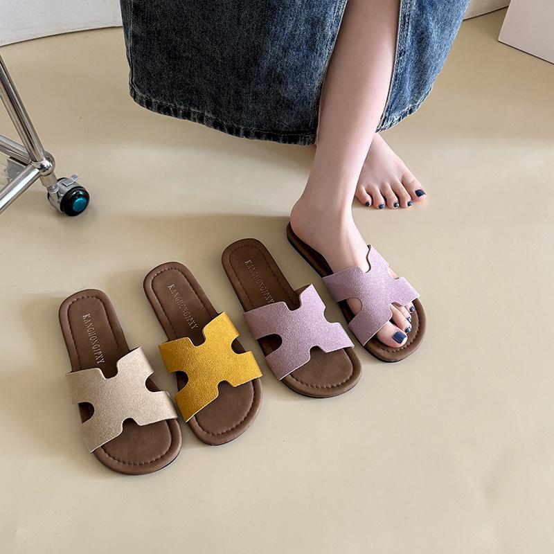 Женские летние тапочки для улицы 2025 новые высококлассные мягкие сандалии на плоской подошве для пляжа модные сандалии с одной перемычкой