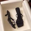 2025 сексуальные черные туфли на среднем каблуке женские туфли тонкий ремешок высокий каблук летние босоножки с открытым носком женские сандалии из мягкой кожи