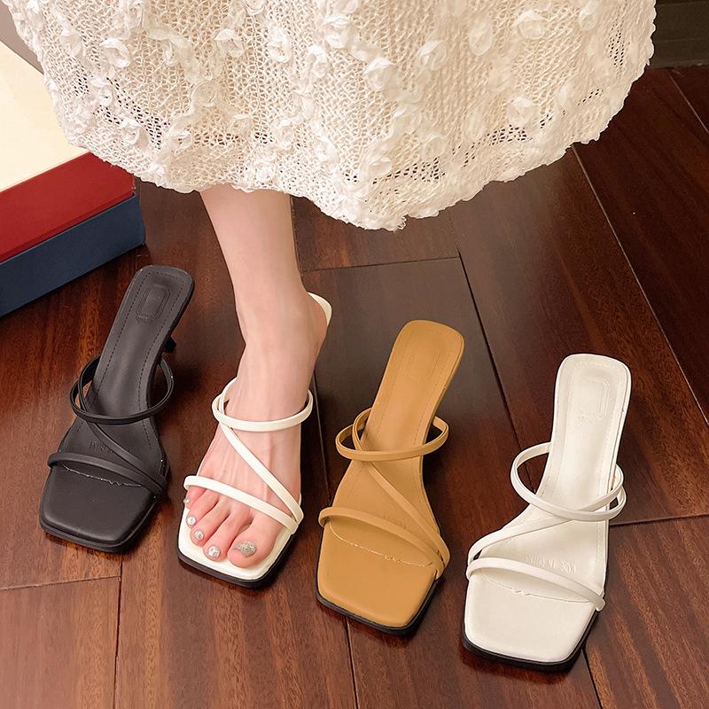 2025 сексуальные черные туфли на среднем каблуке женские туфли тонкий ремешок высокий каблук летние босоножки с открытым носком женские сандалии из мягкой кожи — купить товар онлайн с бесплатной доставкой по всему миру!