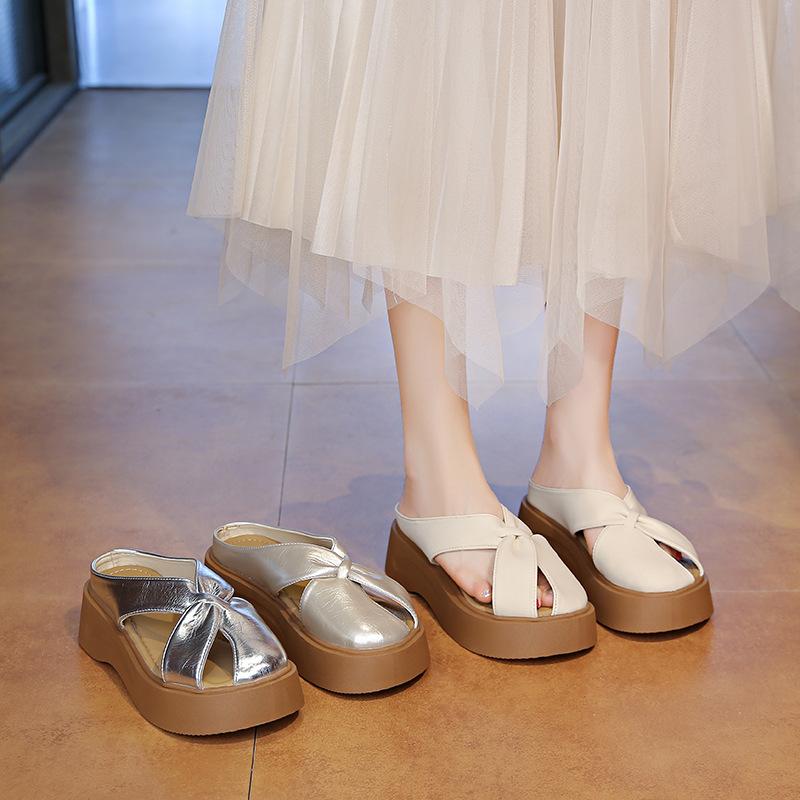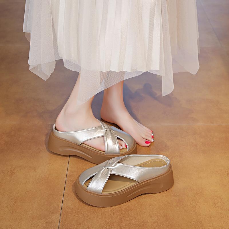 Баотоу полый танкетка полушлепанцы женская уличная одежда 2025 лето новый темперамент плоская подошва одинарные прохладные тапочки