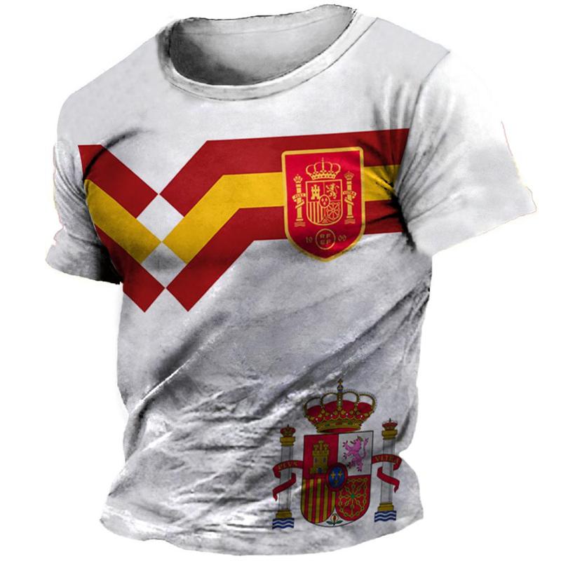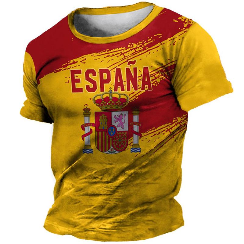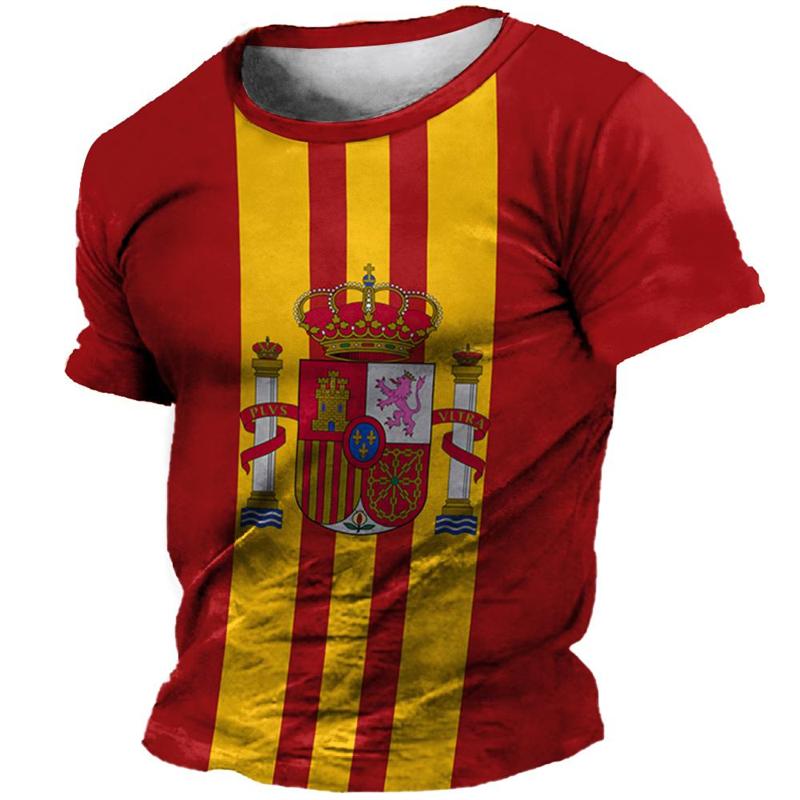 Футболка с 3D-принтом в стиле ретро с флагом Испании, мужская одежда, футболки с коротким рукавом и круглым вырезом, уличная одежда в стиле Харадзюку, футболка с национальной эмблемой