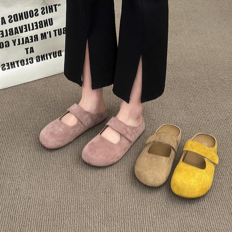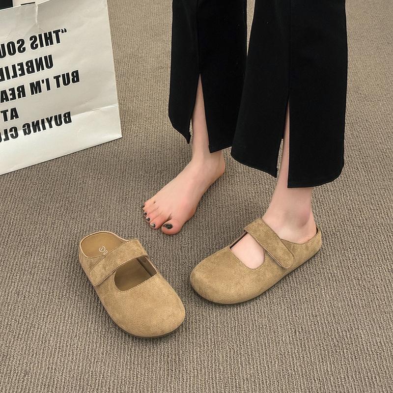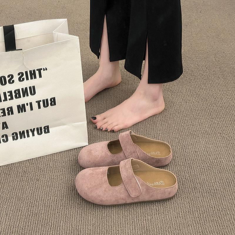 Летом 2025 года новые модные розовые полубосоножки на липучке с одной педалью, уличные тапочки на платформе, увеличивающие рост.