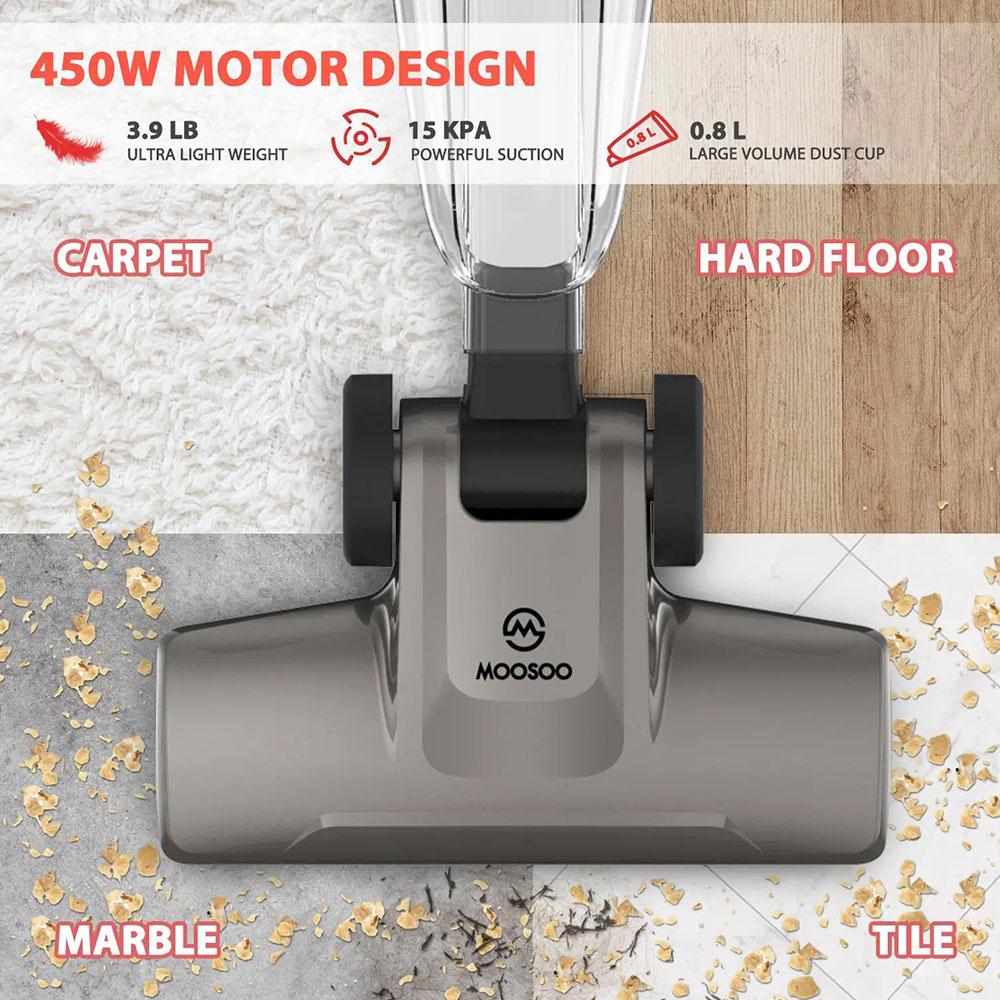 Благодаря своей отдельно стоящей конструкции, пылесос MOOSOO LT-450 Cord можно хранить как вертикальный пылесос. Вы можете поставить его где угодно, не беспокоясь о том, что он сломается или перевернется.