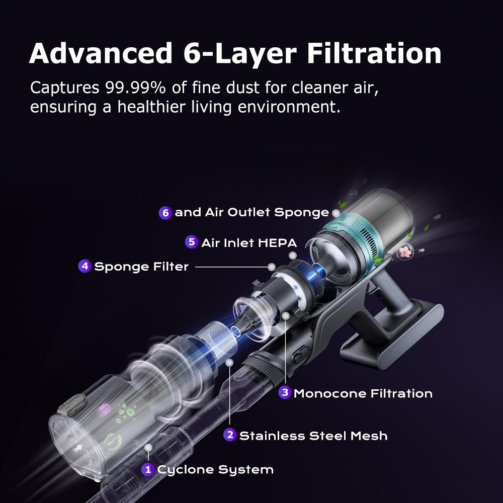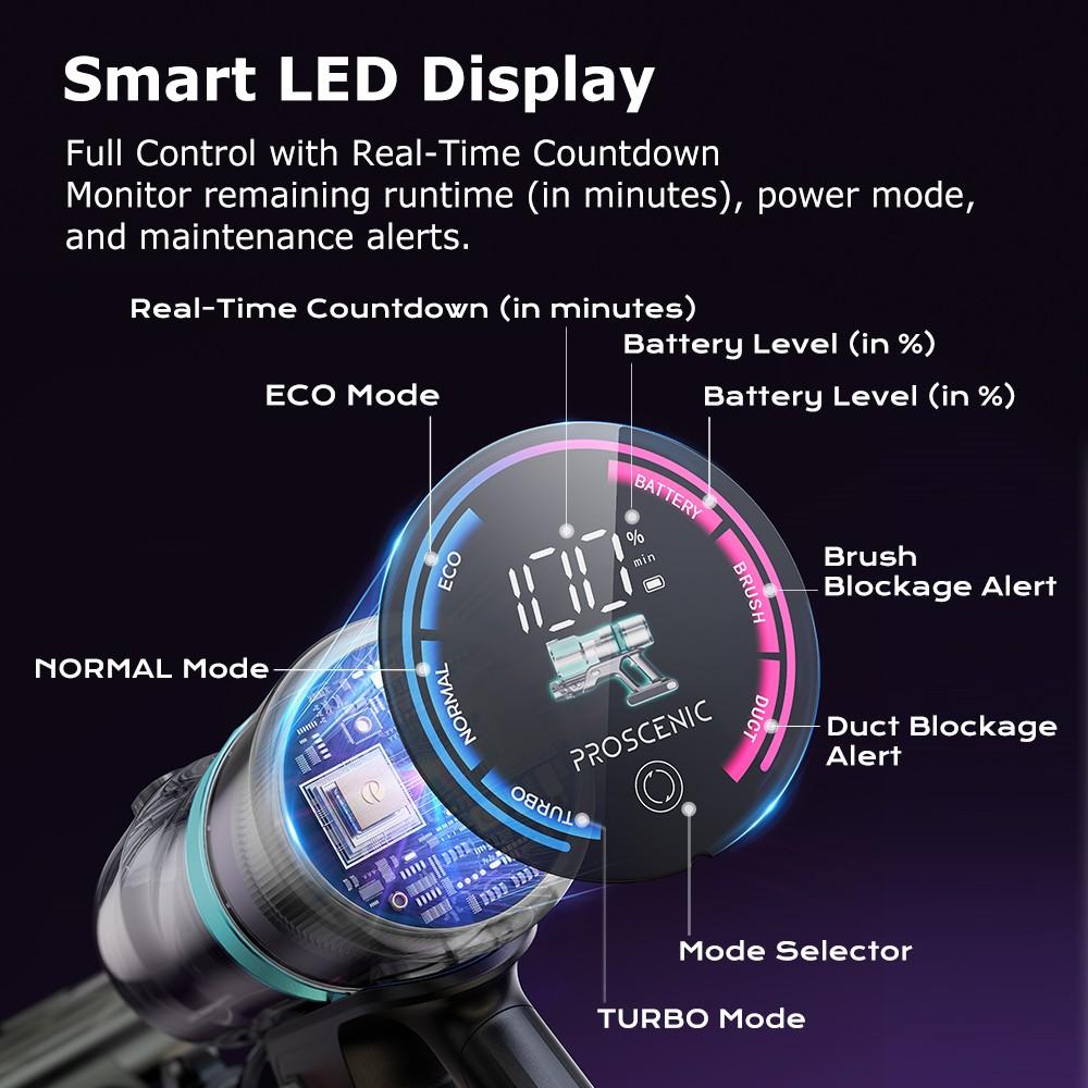 Proscenic P16 Cordless Stick Vacuum Cleaner, 50kPa Suction, 55mins Runtime, 180° Bendable Wand