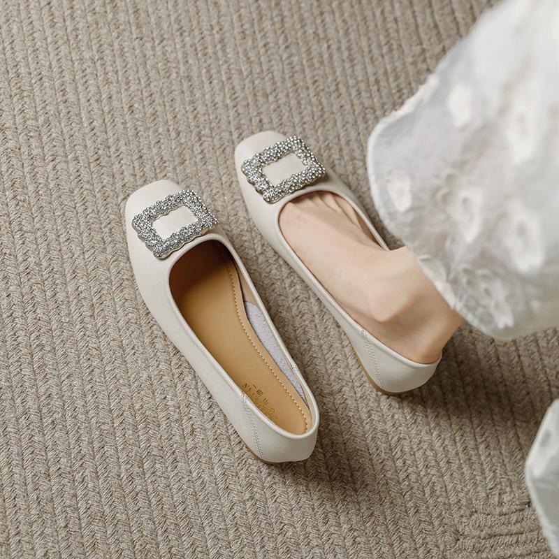 Женские туфли-лодочки новые летние из искусственной кожи на мягкой подошве, не утомляют, с металлическим квадратным пряжком, инкрустированным стразами, неглубокие балетки — купить товар онлайн с бесплатной доставкой до всему миру!