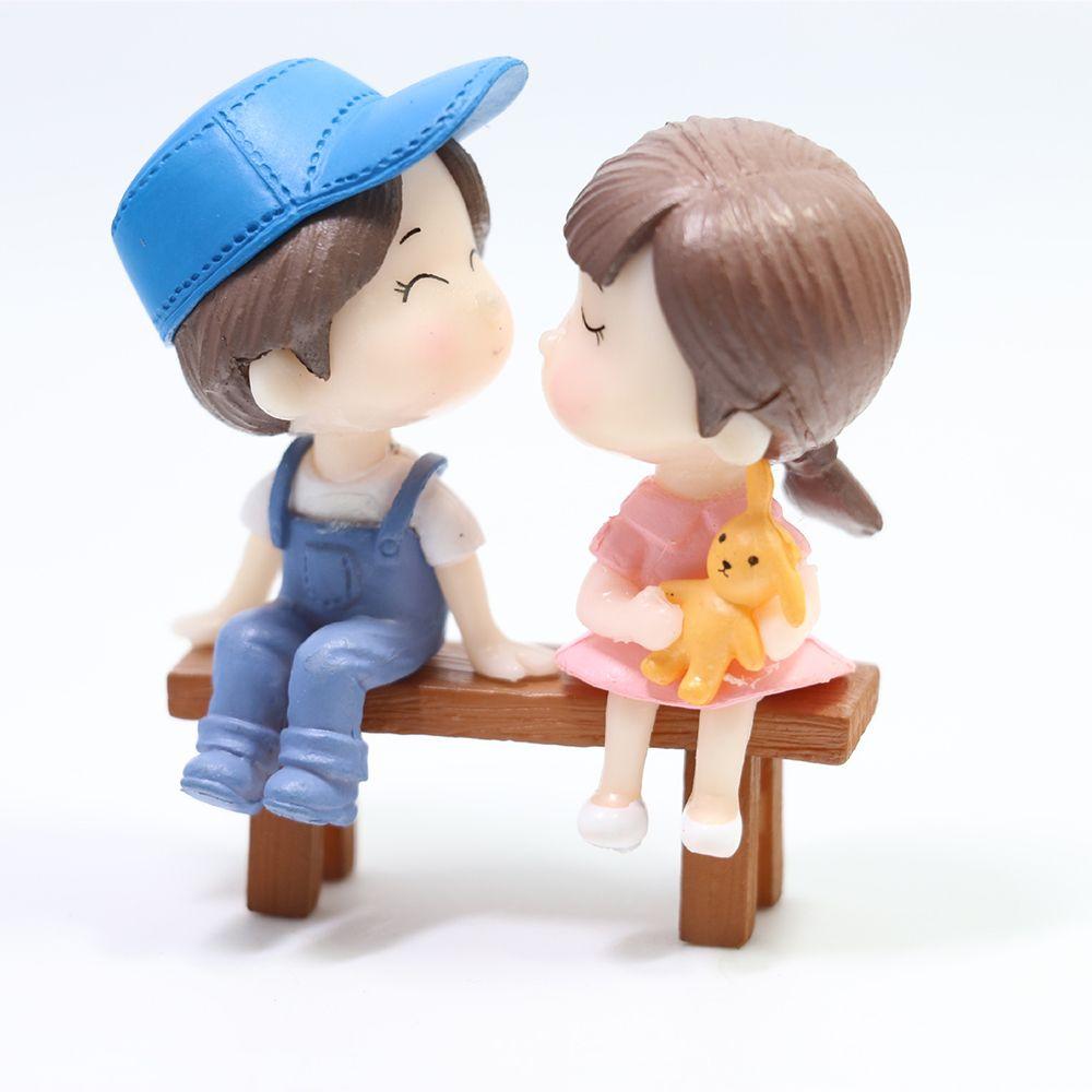 2pcs Sweety Cake Decoration Miniatures Crafts Resin Fairy Garden Couple Figurines Lovers Stool