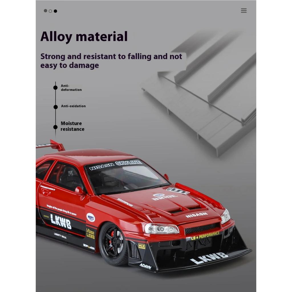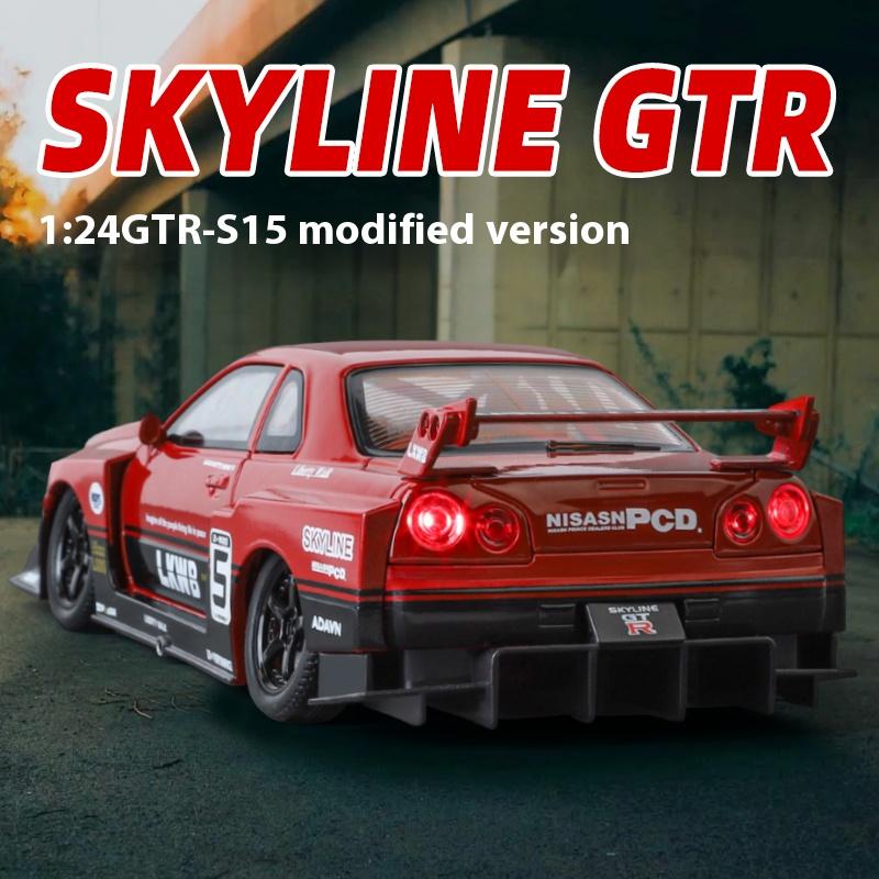 Масштаб 1/24 Nissan Skyline Ares GTR R34 S15 Модифицированная версия с широким кузовом Суперкар Сплав Литой под давлением Транспортное средство Модель автомобиля Звук Свет Детский подарок