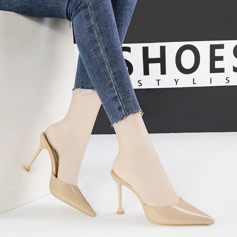 - Стильные и простые женские тапочки на высоком каблуке, женские тонкие каблуки, заостренный носок, универсальные женские сандалии, тапочки с закрытым носком