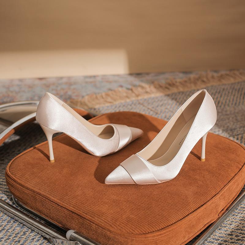 Показ мод женские тонкие каблуки острый носок высокие каблуки темперамент свадебное платье зацепка новая свадебная обувь женская СМ