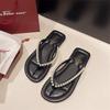 Женские летние 2025 шлепанцы с жемчугом и стразами, нескользящие: Элегантные уличные пляжные шлепанцы