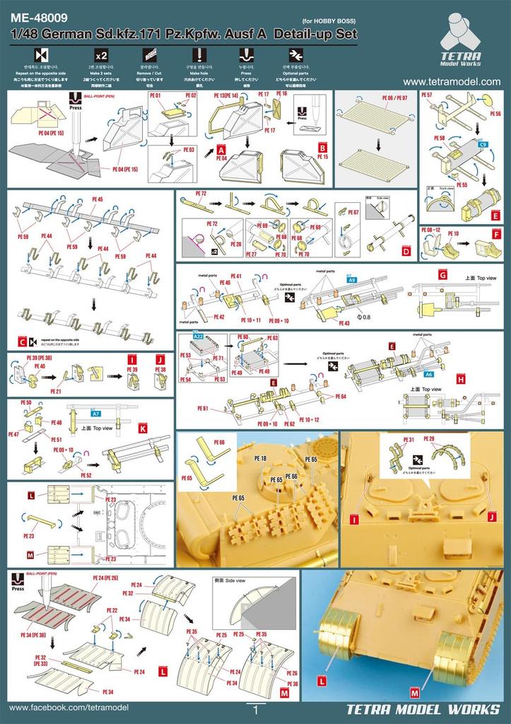 Tetra Model Works Серия ME Немецкий средний танк Panther A Фототравление Пластиковые детали для модели ME4808 1/48 Ausf. (HB) (Боевая машина)