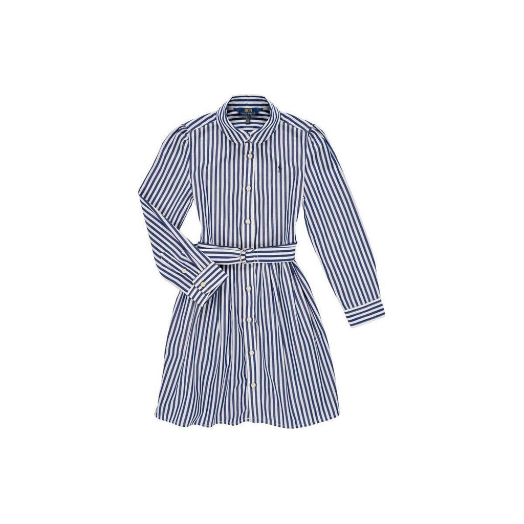 Платье миди с длинным рукавом и воротником с полосатым принтом Polo Ralph Lauren Детские платья Белый 313785816-003