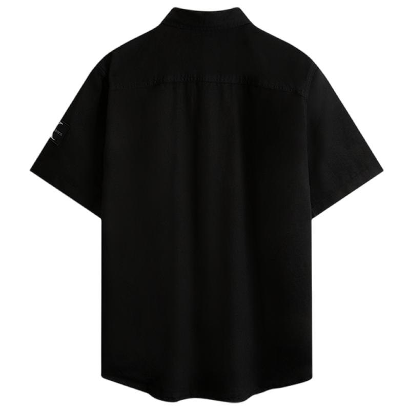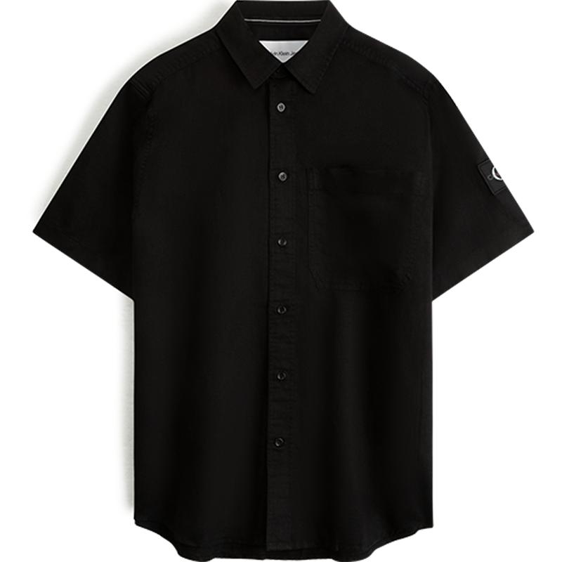 Calvin Klein Минималистичная вышивка логотипа Удобная смесь хлопка и льна Свободная рубашка с коротким рукавом Мужские рубашки Космически-черный J322948-BEH