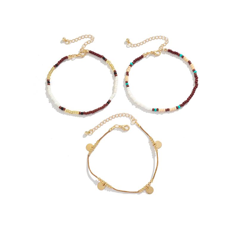 3 шт./компл. Богемные браслеты на ногу из рисовых бусин для женщин, винтажный тренд, цепочка для ног с круглыми пайетками, летние пляжные украшения для босиком