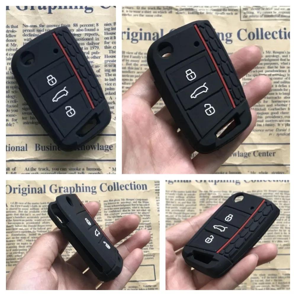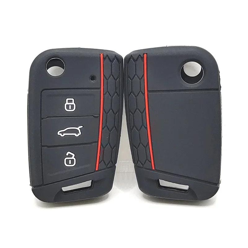 Силиконовый чехол для выкидного ключа с 3 кнопками, подходит для VW GOLF 7 MK7 SKODA SEAT 2014 2015 2016 FOB HULL OCTAVIA COMBI LEON IBIZA CUPTRA Case