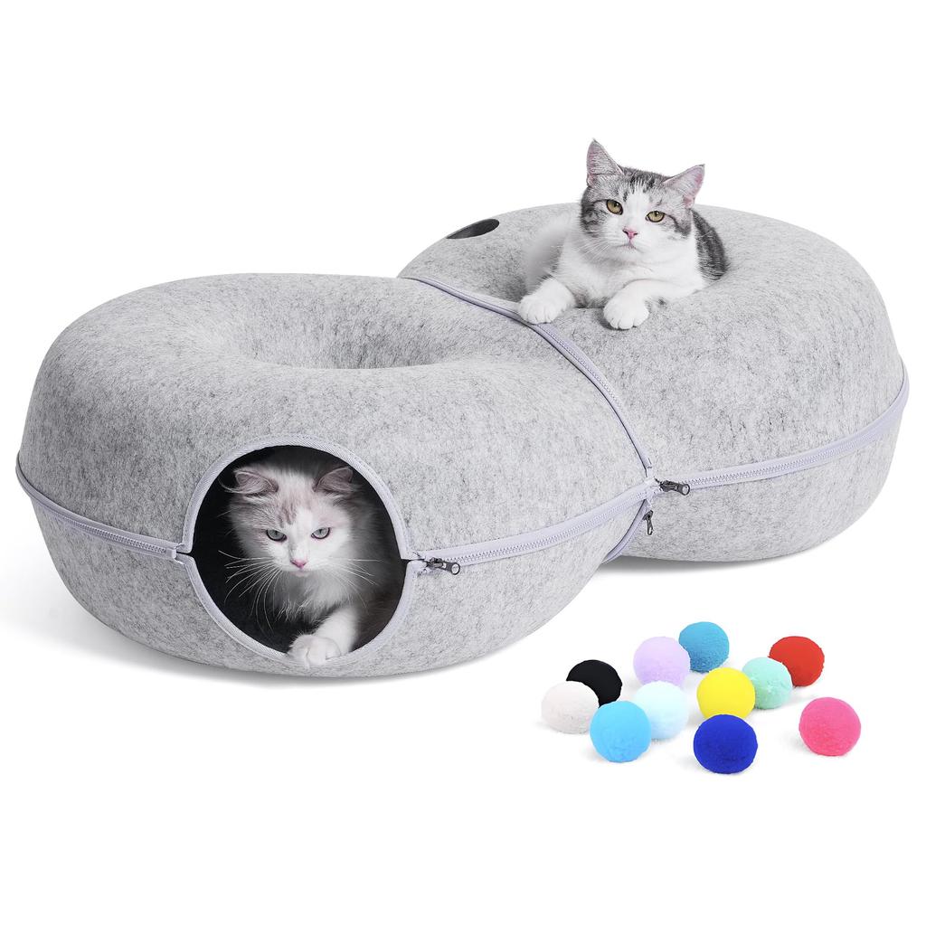 Большая лежанка для кошек LovIntry Кошачий туннель Съемный кошачий пончик с 12 игрушечными шариками Кошачий домик для кошек весом до 13 кг L L-образный (Светло-серый, (96x60x28см)) — купить товар онлайн с бесплатной доставкой до всему миру!