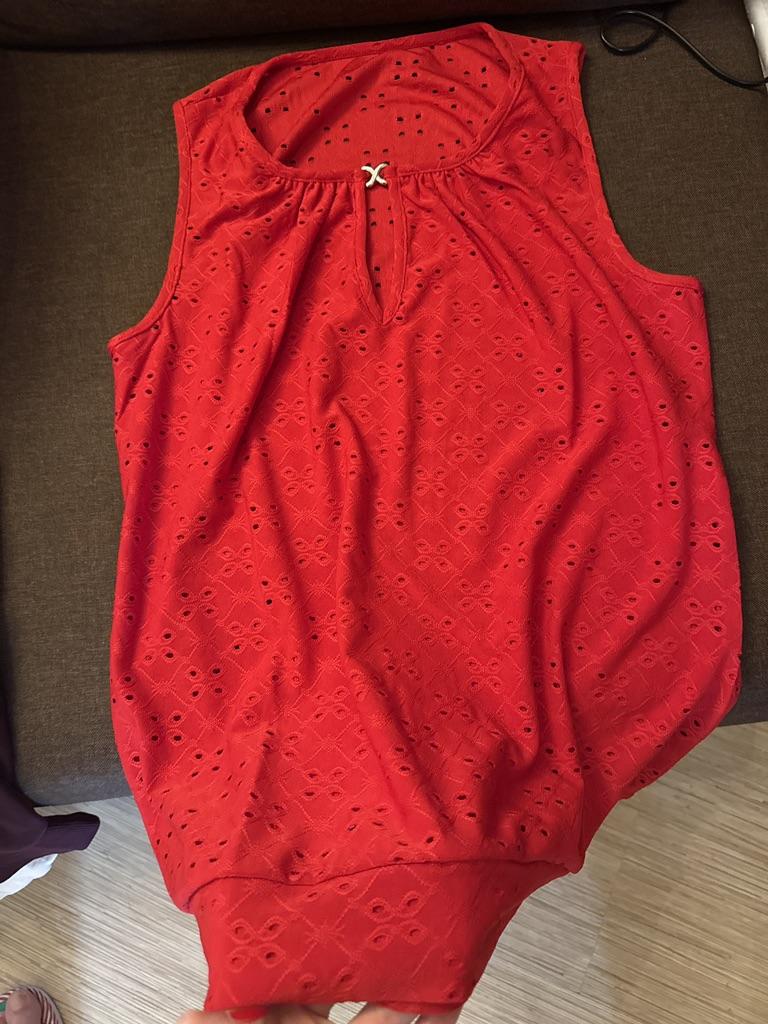 Очень приятная маечка, мило смотрится, но надо брать размер в размер, на 44 размер М очень большая, при этом носить всё равно спокойно можно