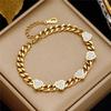 Набор украшений из нержавеющей стали 316L: Позолоченная кубинская цепь-колье и браслет со вставками из кубического циркония в форме сердца