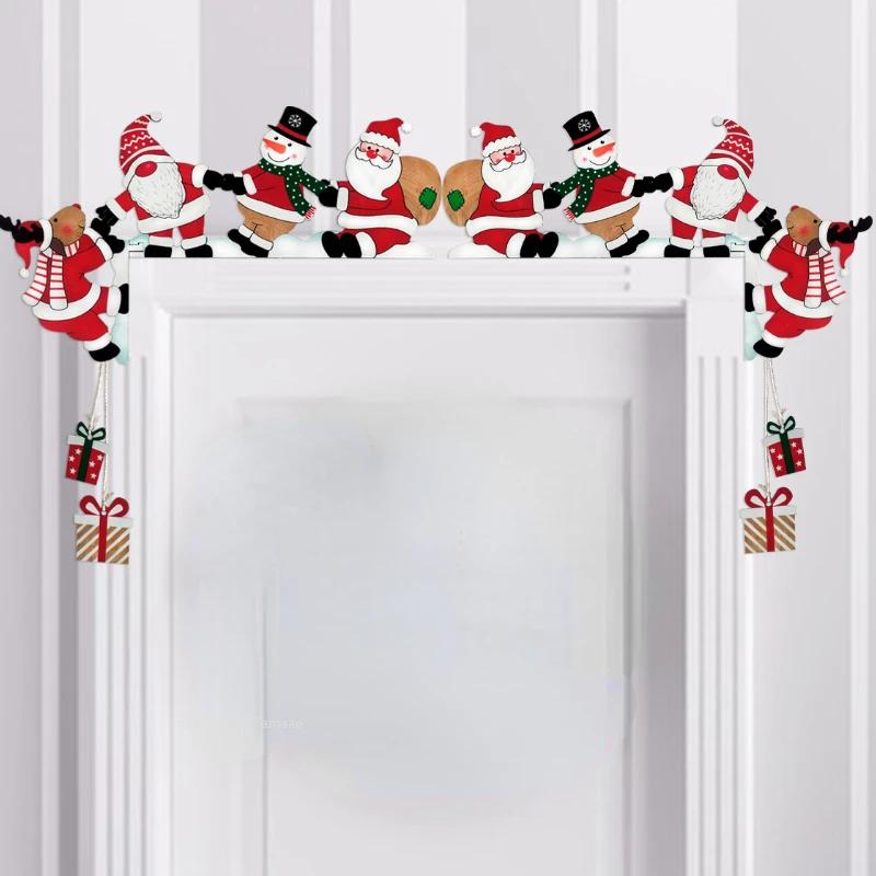 Рождественский подвесной декор дверной рамы, деревянный Санта-Клаус, лось, рождественский гном, дверной уголок, украшение Navidad, новогодние декоративные реквизиты
