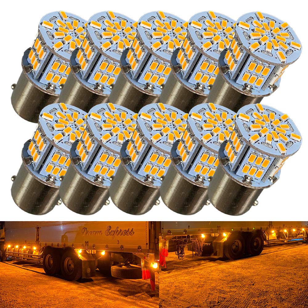 Откройте для себя ветры Super Bright S25 G18 Одноконтактные 12В 24В Совместимые для автомобилей и 3014 54SMD Светодиодные лампы Янтарные 10 шт. Мотоциклы, Грузовики!