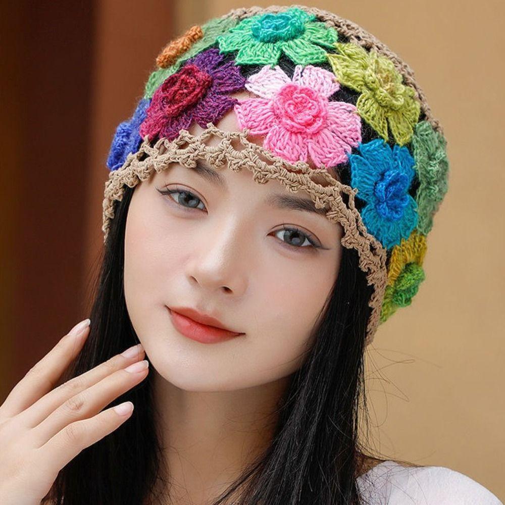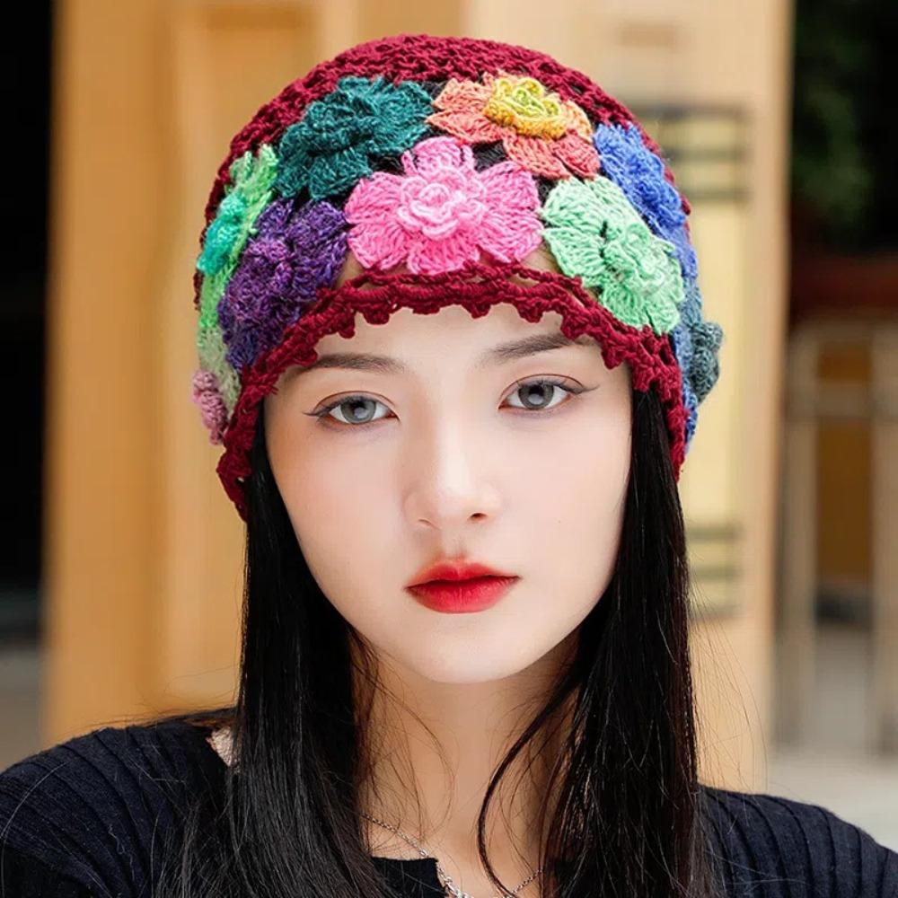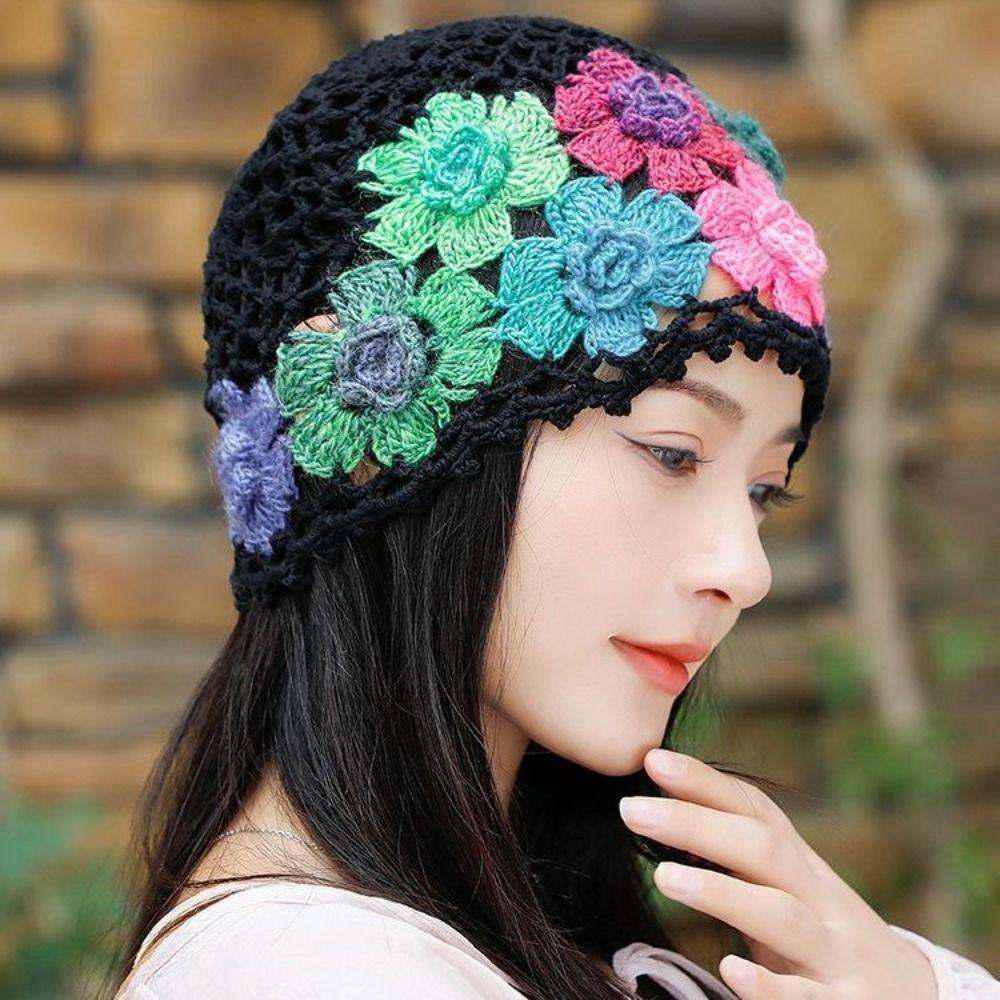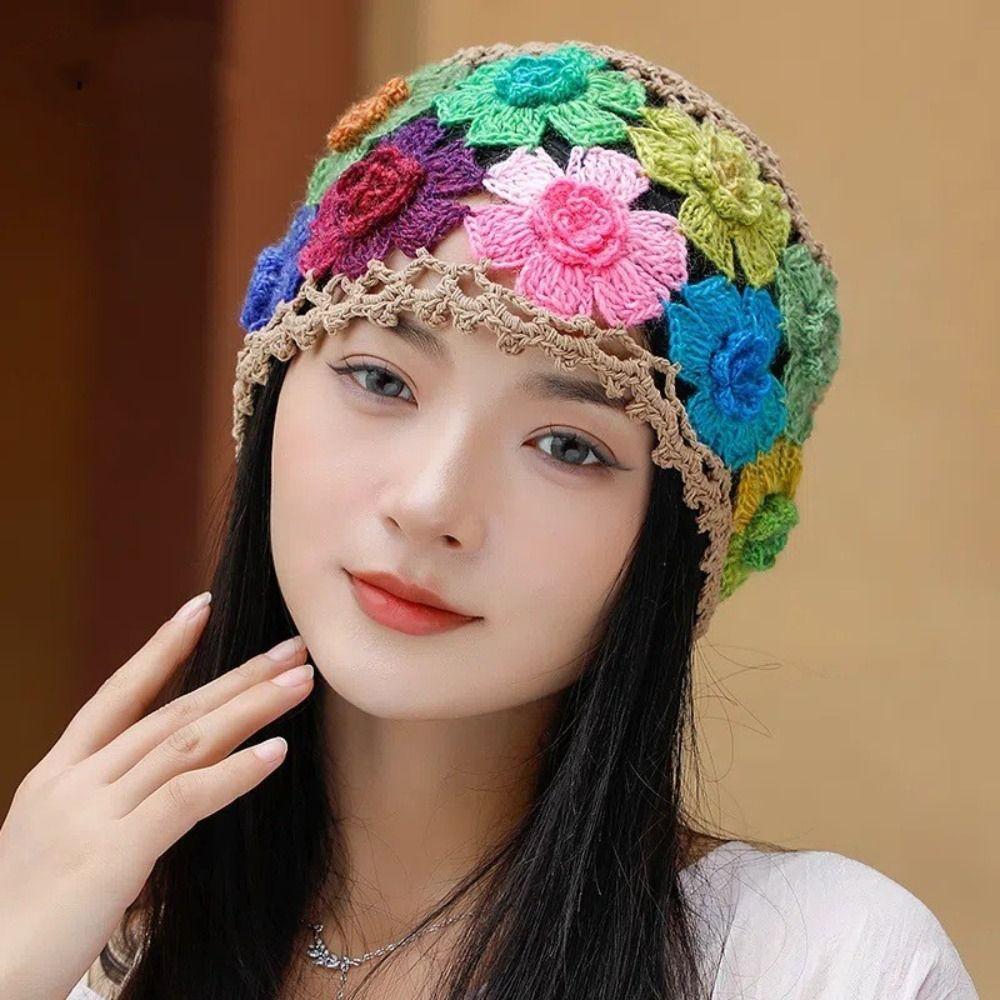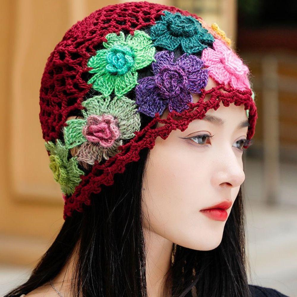 Breathable Hollow Baotou Cap Hand-Knitted Painter Hat Artistic Crochet Beanie Cap Spring
