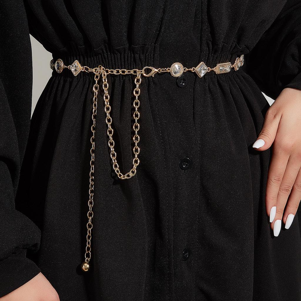 Стразовая цепочка на талию Металлические аксессуары Пояс с юбкой Платье Цепочка на талию Украшение Тонкий пояс Тренд