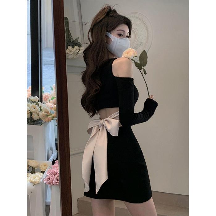Черная однотонная короткая юбка А-силуэта с открытой талией для женщин на весну и лето, новое сексуальное приталенное платье с плиссировкой, закрывающее бедра