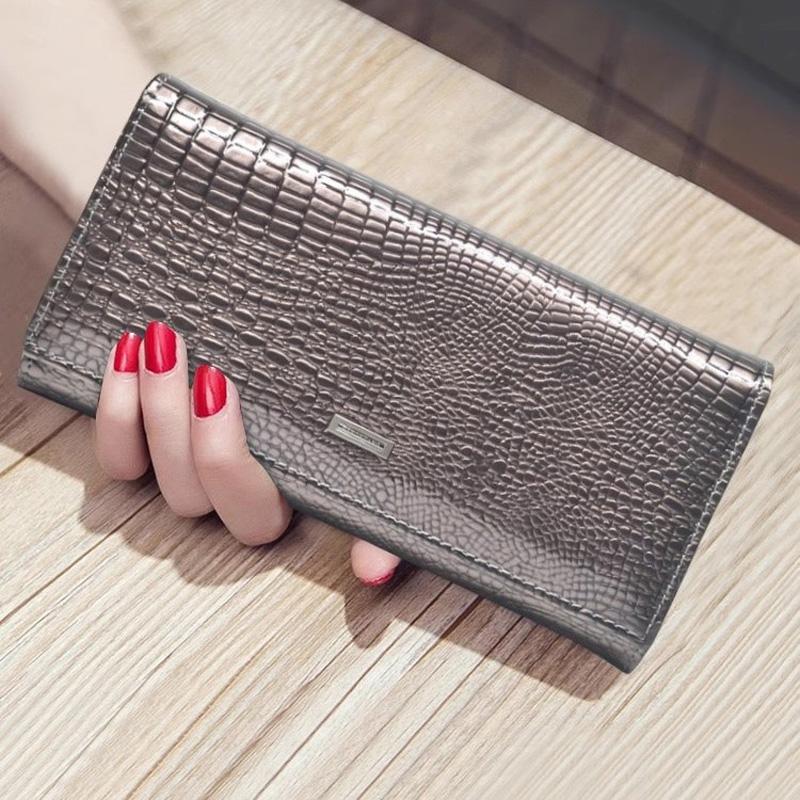 Женский кошелек из натуральной кожи с тиснением под аллигатора, роскошный брендовый кошелек из коровьей кожи, длинные женские кожаные кошельки
