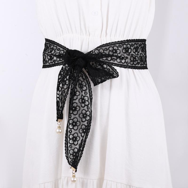 Кружевной пояс-подвеска с жемчугом, женское украшение для талии платья, пояс-бант, поясная веревка с завязанным шнурком для ханьфу