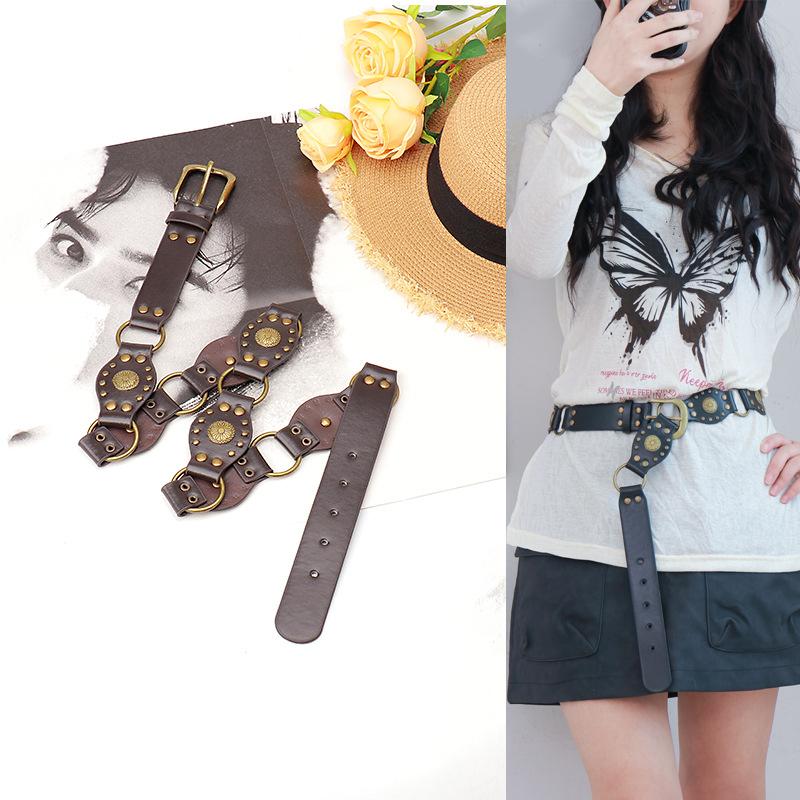 Винтажный ремень женский Американская тяжелая промышленность Металл Красотка Заклепки Шипы Сращивание Широкий Пояс Панк Персонализированный Ремень