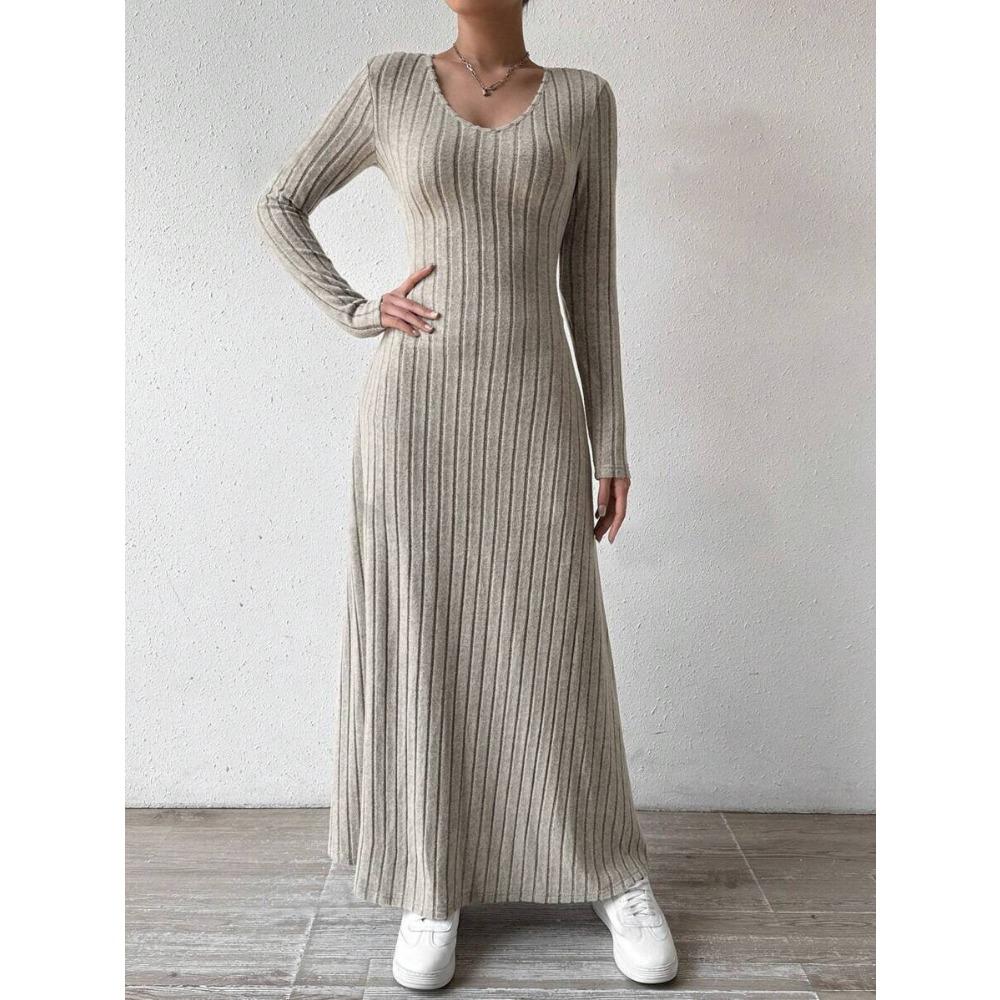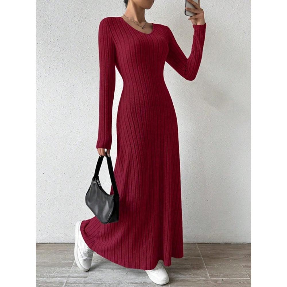 Модное облегающее платье макси А-силуэта для женщин, осень-зима, однотонное облегающее платье с V-образным вырезом, длинные рукава, эластичные трикотажные свадебные платья