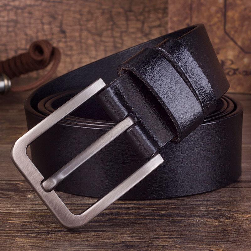 Мужской ремень из чистой коровьей кожи с пряжкой-иголкой, кожаный ремень, высококачественная коровья кожа, повседневный