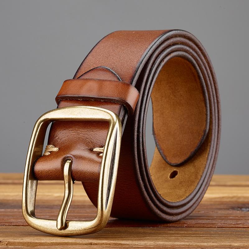 Ретро Ремень из Натуральной Коровьей Кожи Мужской Ремень из Чистой Коровьей Кожи Первого Слоя Повседневный Британский Молодежный Ремень Для Среднего Возраста