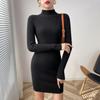 Женское облегающее платье-свитер с воротником-стойкой, длинное трикотажное сексуальное облегающее платье, базовое повседневное платье для женщин