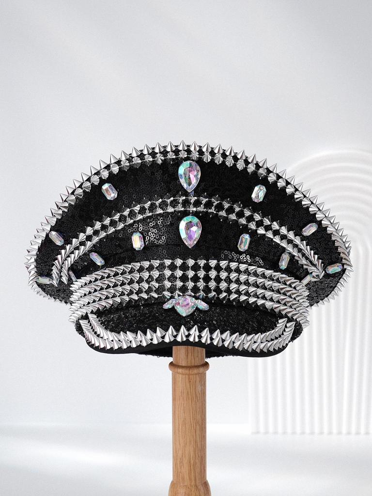 Металлическая шляпа для сцены в стиле Y2K с заклепками и стразами для мужчин и женщин