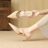 Сексуальные и тонкие, на высоком каблуке, с мелким вырезом, с острым носком, с полыми заклепками, женская обувь, тонкий каблук, с закрытым носком, крутые шлепанцы.
