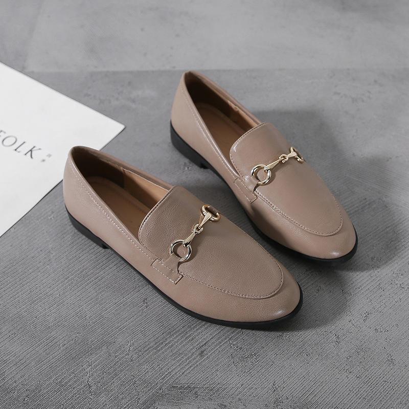 Маленькие кожаные туфли женский стиль новые ретро лоферы женские однопедальные на плоской подошве одинарные туфли