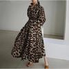 Женский хлопковый свободный элегантный хлопковый сарафан с лацканами и высокой талией, длинный рукав, длинное платье-рубашка