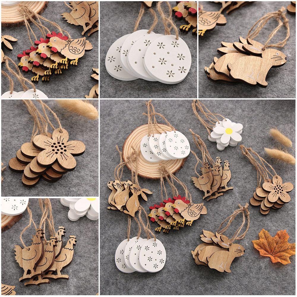 Natural Rabbit Pendants Handcraft Wooden Easter Wood Chips Easter Decorations Hanging Ornaments