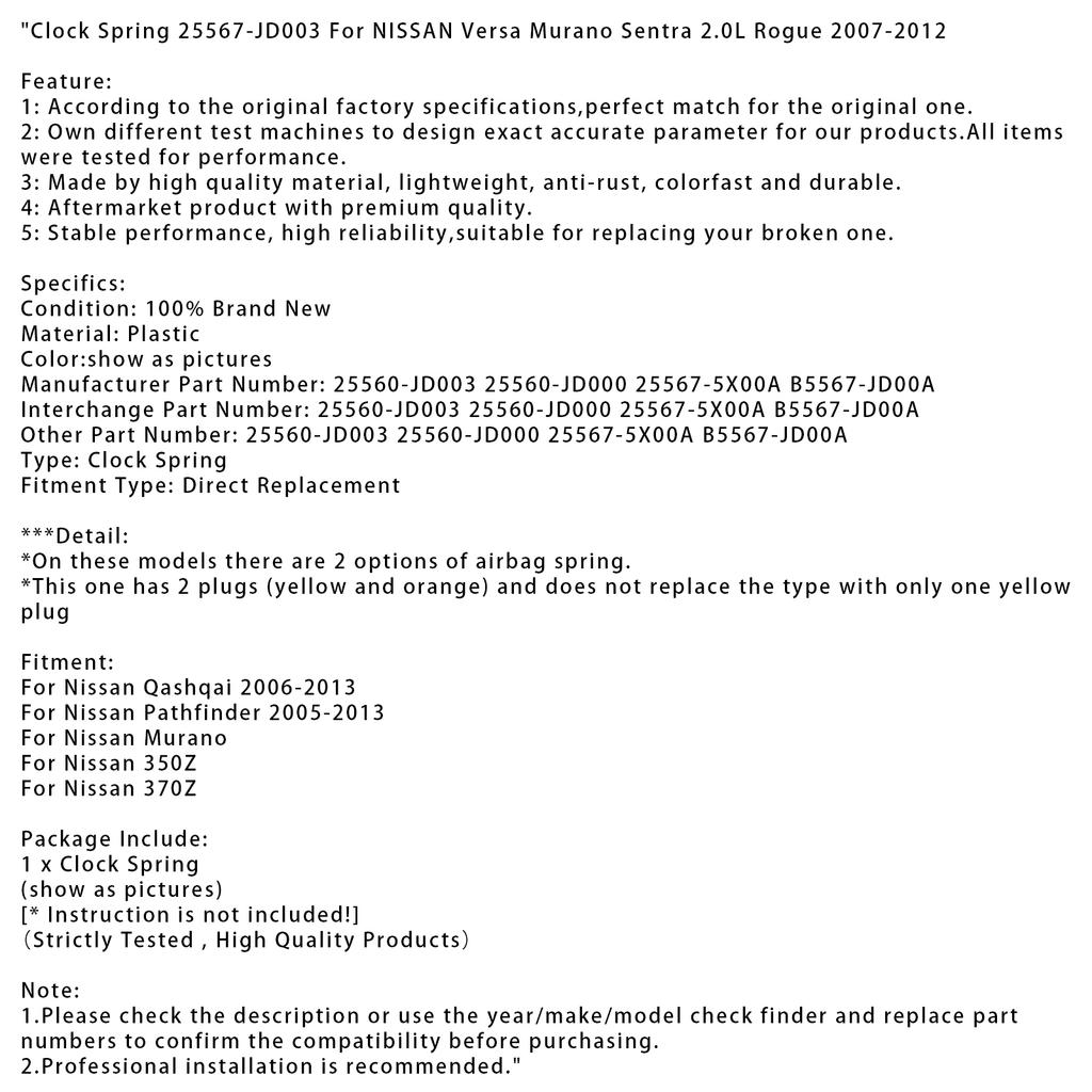Шлейф подрулевой 25567-JD003 Для NISSAN Versa Murano Sentra 2.0L Rogue 2007-2012