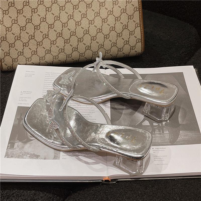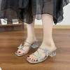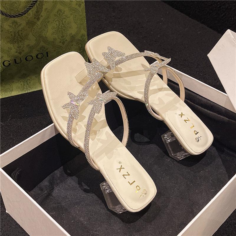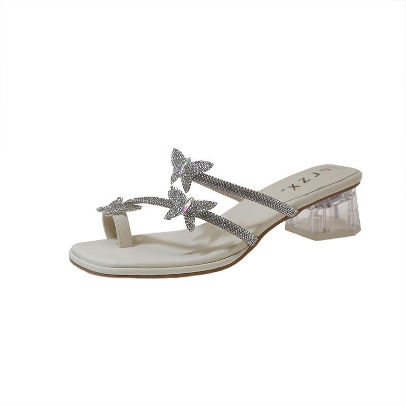 Хрустальные шлепанцы на толстом каблуке для женской летней обуви 2025 новая мода стразы-бабочки два способа носки крутые шлепанцы