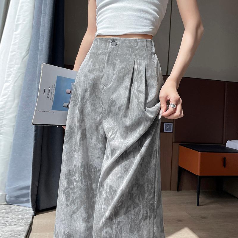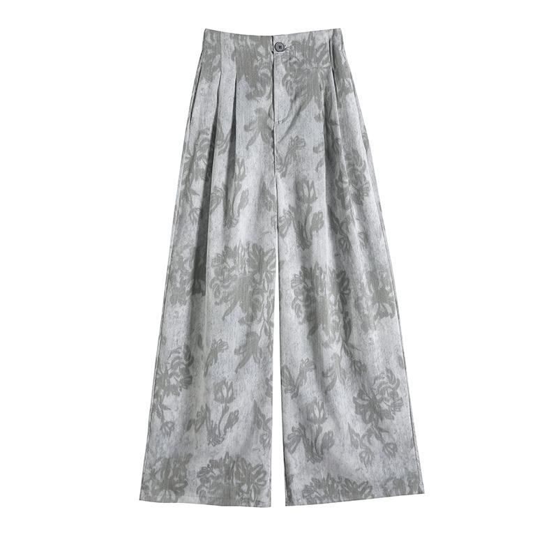 Летние женские винтажные льняные тонкие брюки с высокой талией и широкими штанинами с принтом и карманом