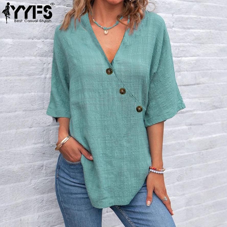 YYFS женские модные повседневные летние весенние однотонные блузки и рубашки с рукавами 1/2 и v-образным вырезом с принтом — купить товар онлайн с бесплатной доставкой по всему миру!