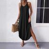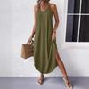 Женские струящиеся платья с закругленным подолом, летние, без рукавов, с V-образным вырезом, свободный крой, длинное платье на подтяжках, однотонные повседневные платья, новые