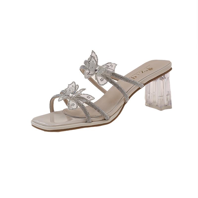 Модные шлепанцы с бантом из стразов, женская летняя обувь, сандалии на толстом каблуке, новинка 2025 года, удобная женская обувь
