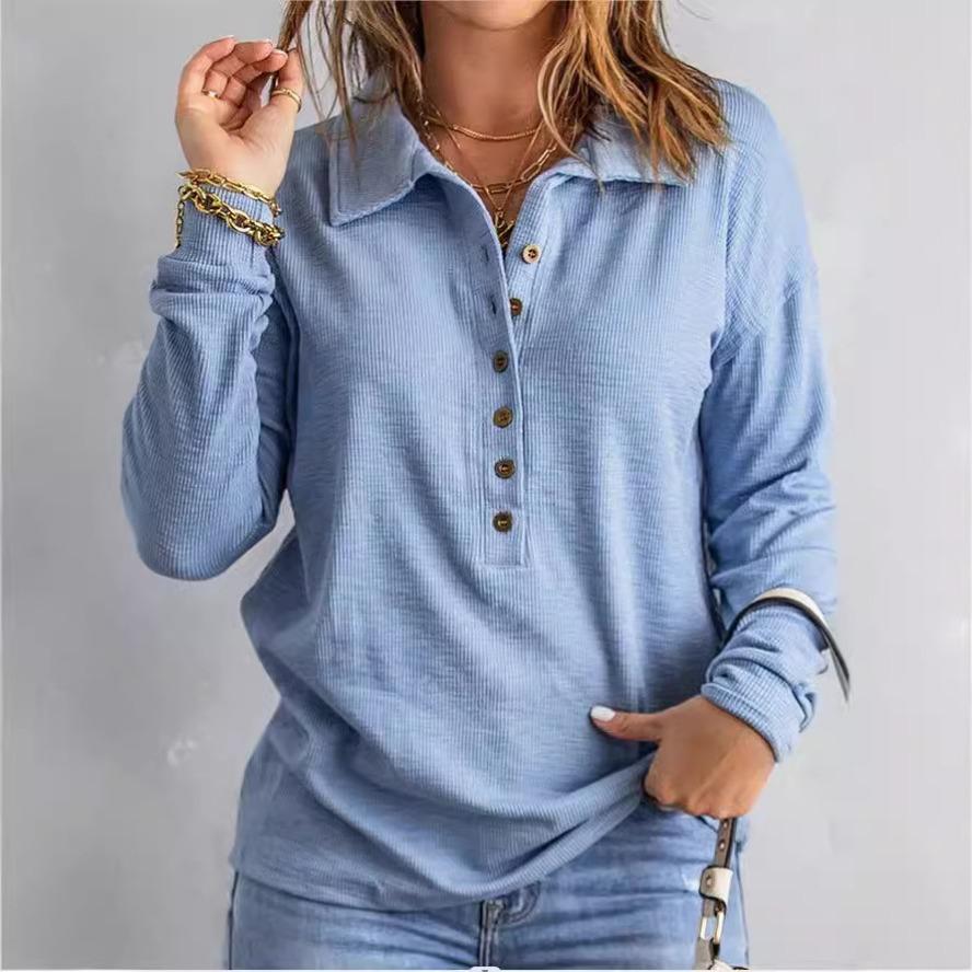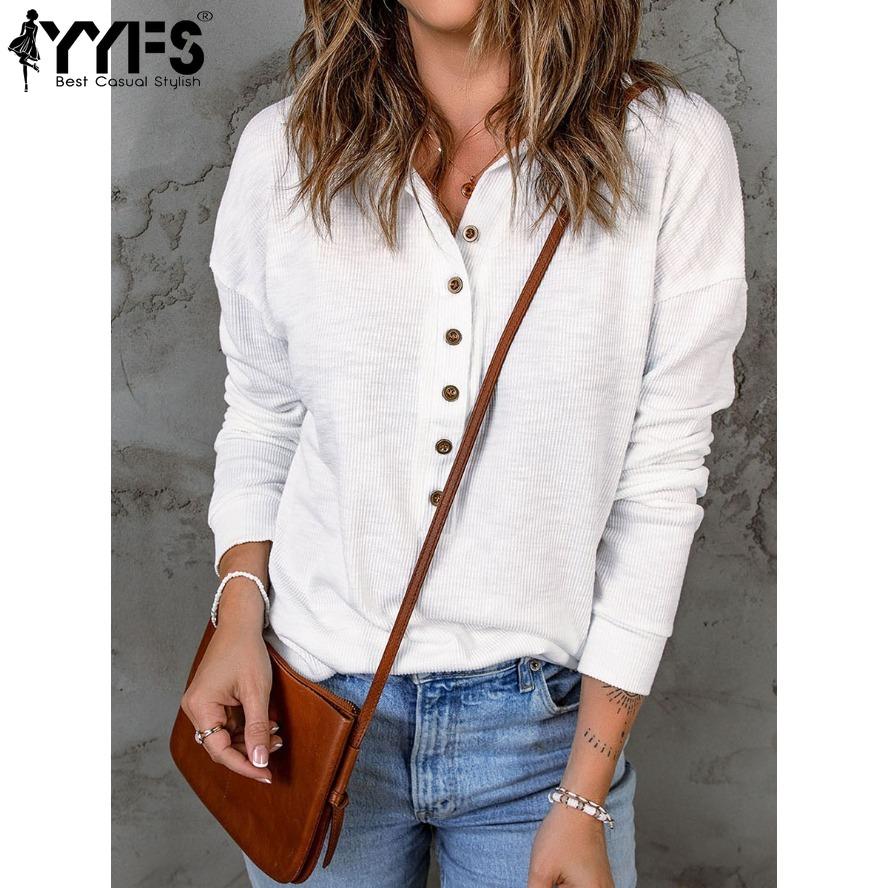 YYFS Женская мода, повседневные весенне-осенние однотонные рубашки-поло с длинным рукавом и принтом, блузки и рубашки