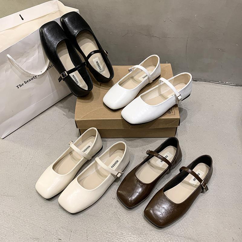 Туфли-лодочки с квадратным носком и неглубоким вырезом женские 2025 новые с юбкой нежные туфли мягкие на плоской подошве Мэри Джейн маленькие кожаные туфли